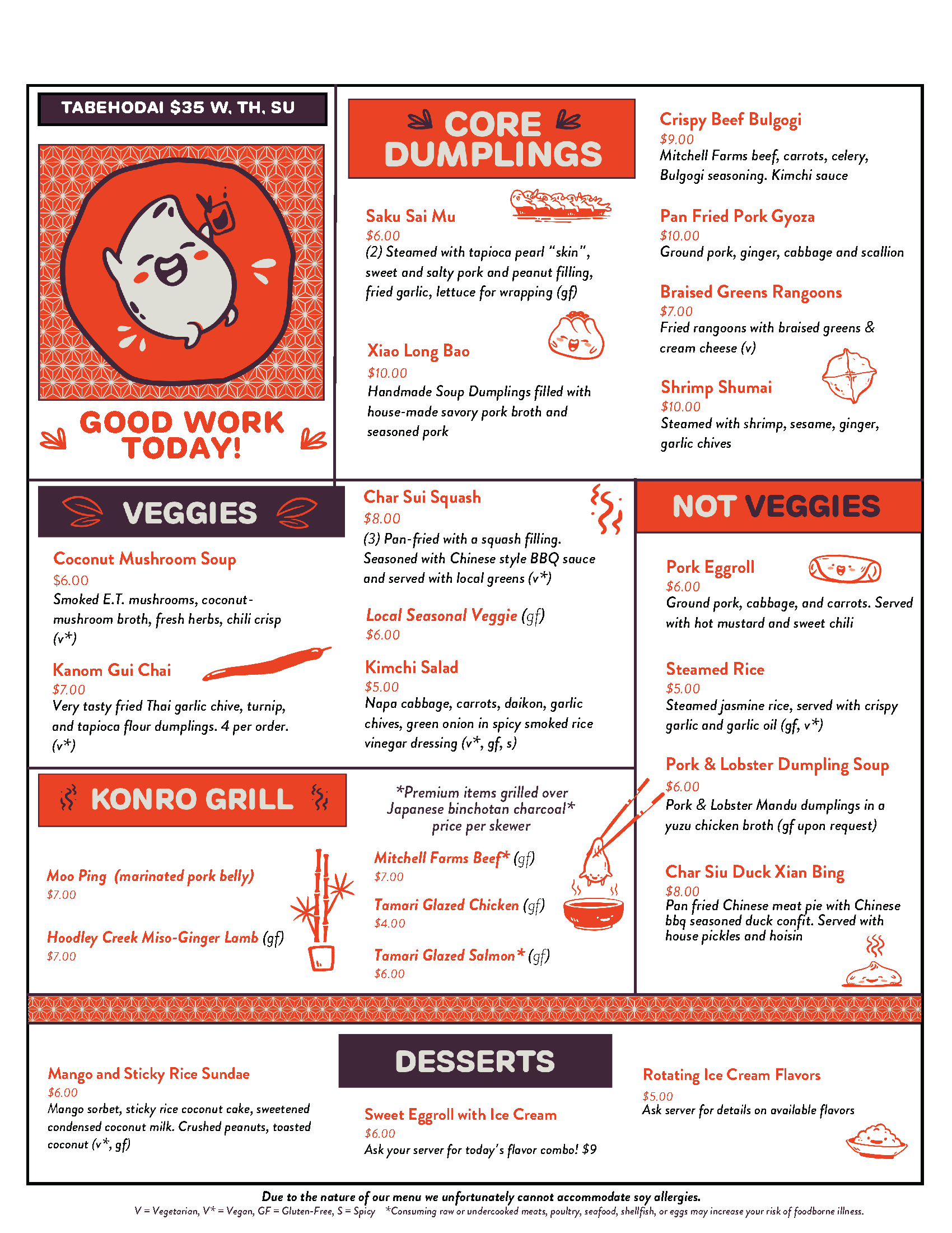 “Tabehodai” means all you can eat, Japanese style. Place your order right from your table and we’ll keep the dumplings coming hot and delicious.